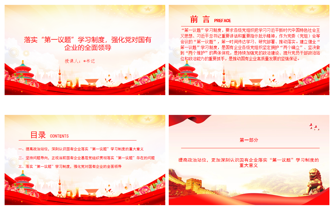 党课PPT+讲稿:落实“第一议题”学习制度,以高质量党建引领国有企业高质量发展+PPT
